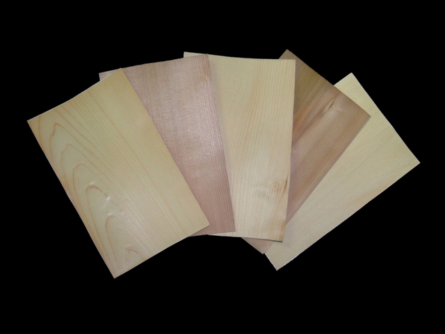 国産天然木を極薄にスライスし、特殊技術によって標準ハガキサイズに加工してあります。 |